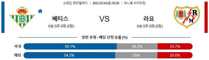 【스페인 FA컵】 3월 4일 베티스 vs 라요 바예카노