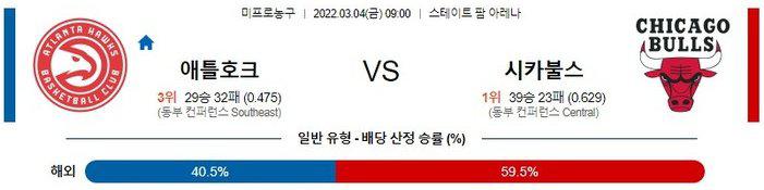 【NBA】 3월 4일 애틀란타 호크스 vs 시카고 불스