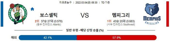 열람중 【NBA】 3월 4일 보스턴 셀틱스 vs 멤피스 그리즐리스 2022.03.03 300