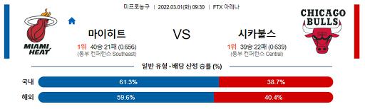 3월 1일 NBA분석 마이애미 : 시카고
