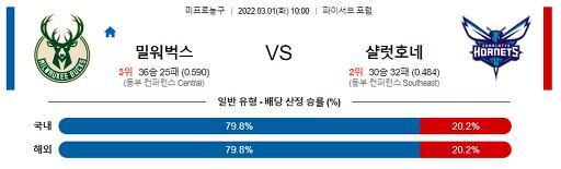 3월 1일 NBA분석 밀워키 : 샬럿