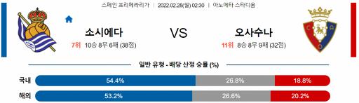 프리메라리가 2월 28일 02:30 레알 소시에다드 : CA 오사수나