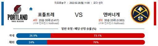 2월 28일 11:00 NBA분석 포틀랜드 : 덴버