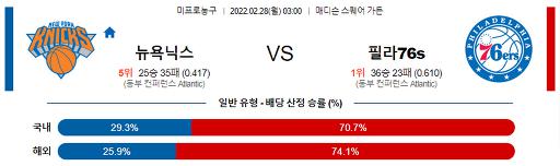 2월 28일 03:00 NBA분석 뉴욕 : 필라델피아