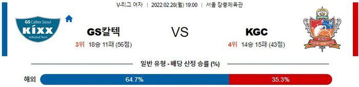 [KOVO 여자배구] 2월 28일 GS칼텍스 vs KGC인삼공사