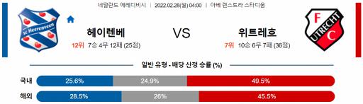 에레디비시 2월 28일 04:00 SC 헤렌벤 : FC 위트레흐트