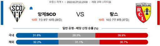 리그앙 2월 27일 23:00 앙제 SCO : RC 랑스