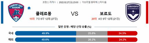 리그앙 2월 27일 23:00 클레르몽 푸트 : 지롱댕 드 보르도