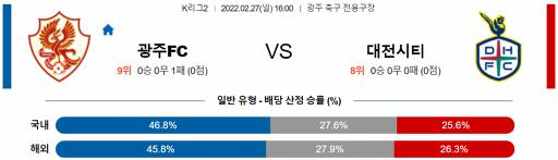 K리그2 2월 27일 16:00 광주 FC : 대전 시티즌