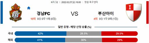 K리그2 2월 27일 16:00 경남 FC : 부산 아이파크