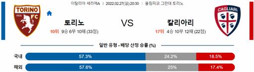 세리에A 2월 27일 20:30 토리노 FC : 칼리아리 칼초