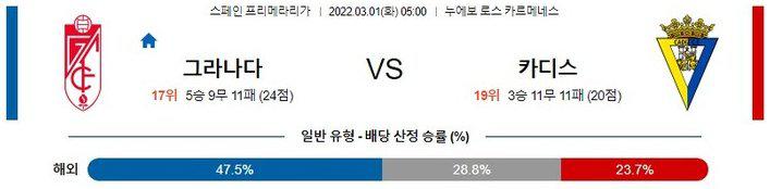 【Laliga】 3월 1일 그라나다 vs 카디스