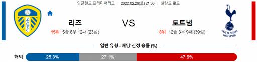 프리미어리그 2월 26일 21:30 리즈 유나이티드 FC : 토트넘 홋스퍼