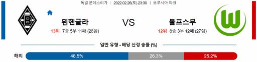 분데스리가 2월 26일 23:30 묀헨글라트바흐 : VfL 볼프스부르크