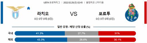 유로파리그 2월 25일 02:45 SS 라치오 : FC 포르투