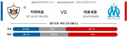 유로파리그 2월 25일 02:45 카라바흐 : 올림피크 마르세유