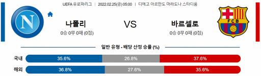 유로파리그 2월 25일 05:00 SSC 나폴리 : FC 바르셀로나