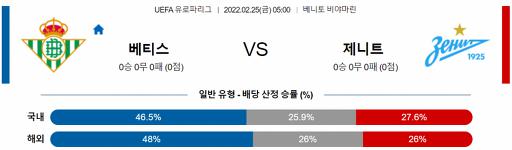 유로파리그 2월 25일 05:00 레알 베티스 : 제니트