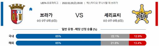 유로파리그 2월 25일 05:00 SC 브라가 : 셰리프