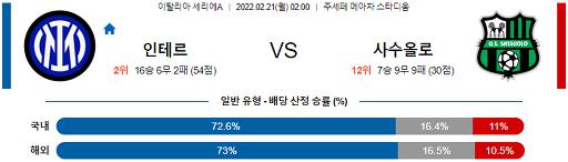 세리에A 2월 21일 02:00 인터 밀란 : US 사수올로 칼초