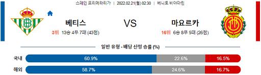 프리메라리가 2월 21일 02:30 레알 베티스 : RCD 마요르카