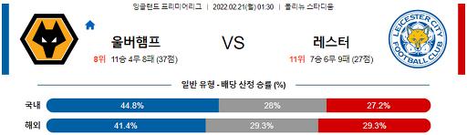 프리미어리그 2월 21일 01:30 울버햄튼 : 레스터 시티