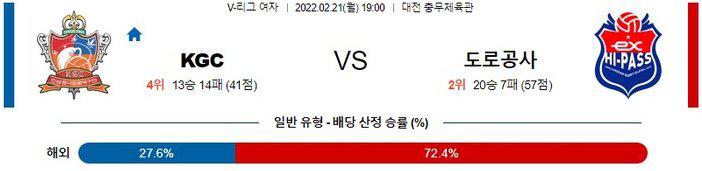 [KOVO 여자배구] 2월 21일 KGC인삼공사 vs 한국도로공사