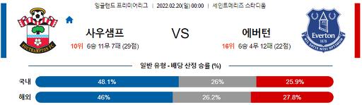 프리미어리그 2월 20일 00:00 사우샘프턴 : 에버턴