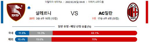 세리에A 2월 20일 04:45 US 살레르니타나 1919 : AC 밀란