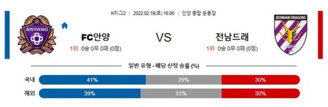 [K리그2] 02월19일 안양FC vs 전남드래곤즈