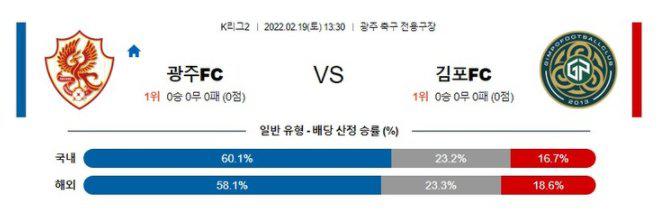 광주의 승리 확률이 높다. 광주가 화력 감소를 겪을 가능성이 높지만 김포도 조직력을 다질 시간이 더 필요하다. 경기 역시 저득점 페이스로 이어질 가능성이 높으며 언더(2.5) 가능성은 상당히 높다. 저득점 / 홈승 쪽으로 가닥을 잡고 핸디(-1.0)는 신중하게 접근하는 것이 좋은 플랜이다.