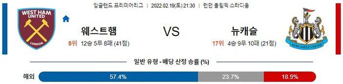 【프리미어리그】 2월 19일 웨스트햄 유나이티드 vs 뉴캐슬 유나이티