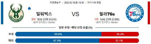 2월 18일 10:30 NBA분석 밀워키 : 필라델피아