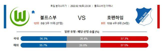 [분데스리가] 2월 19일 볼프스부르크 vs 호펜하임