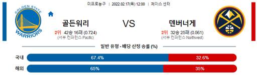 2월 17일 12:00 NBA분석 골든스테이트 : 덴버