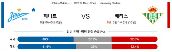 [UEFA유로파] 2월18일 FC 제니트 vs 레알 베티