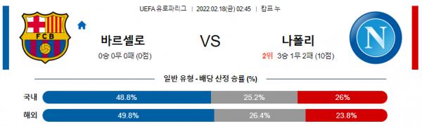 [UEFA유로파] 2월18일 FC 바르셀로나 vs SSC 나폴리● 바르셀로나 (리그 4위 / 패패승승무)