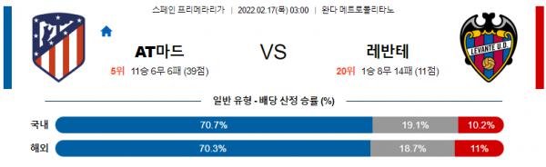 【프리메라리가】 2월17일 아틀레티코 마드리드(AT 마드리드) vs 레반테 UD● 아틀레티코 마드리드 (리그 5위 / 패패승패승)