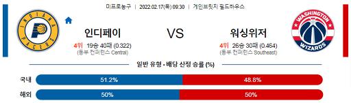 2월 17일 09:30 NBA분석 인디애나 : 워싱턴