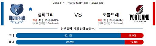 2월 17일 10:00 NBA분석 멤피스 : 포틀랜드