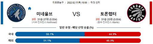 2월 17일 10:00 NBA분석 미네소타 : 토론토