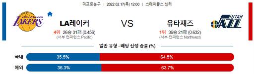 2월 17일 12:00 NBA분석 LA레이커스 : 유타