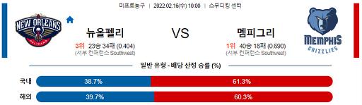 2월 16일 10:00 NBA분석 뉴올리언스 : 멤피스
