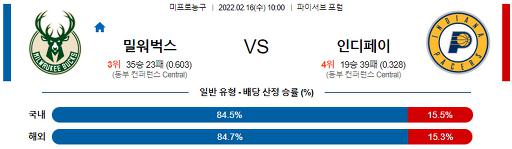 2월 16일 10:00 NBA분석 밀워키 : 인디애나