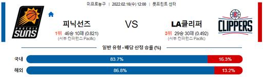 2월 16일 12:00 NBA분석 피닉스 : LA클리퍼스