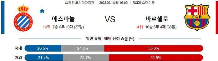[라리가] 2월 14일 에스파뇰 vs 바르셀로나에스파뇰 (리그 13위 / 패패무패패)