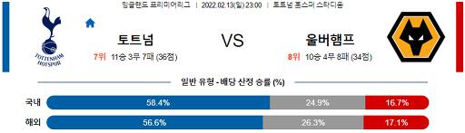 프리미어리그 2월 13일 23:00 토트넘 홋스퍼 : 울버햄튼