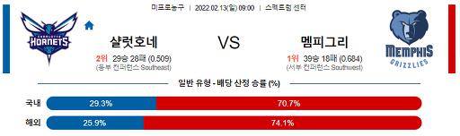 2월 13일 09:00 NBA분석 샬럿 : 멤피스