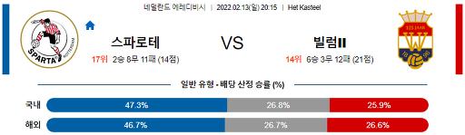 에레디비시 2월 13일 20:15 스파르타 로테르담 : 빌럼 II