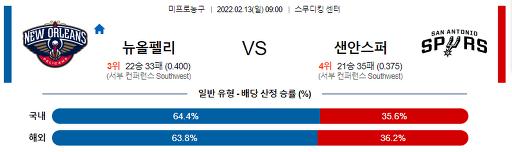 2월 13일 09:00 NBA분석 뉴올리언스 : 샌안토니오